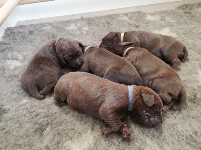 Die 2 Rüden und 3 Hündinnen sind bereits in gute Jägerhände versprochen.
